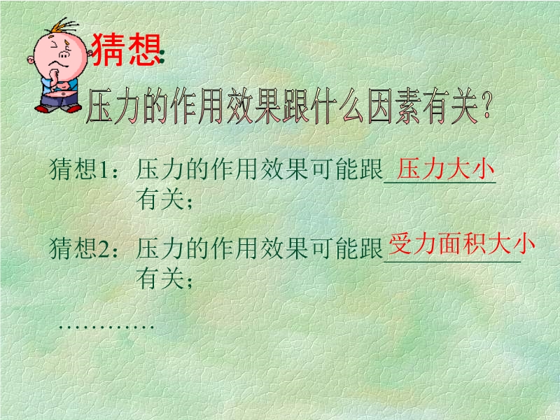 【内容简介】新人教版《14.1压强》ppt课件为安庆市外国语学校公开课课件,课件共由32张幻灯片组成,内容详实,图文并茂。教学设计过程体现新课标探究课特点,为作者原创。