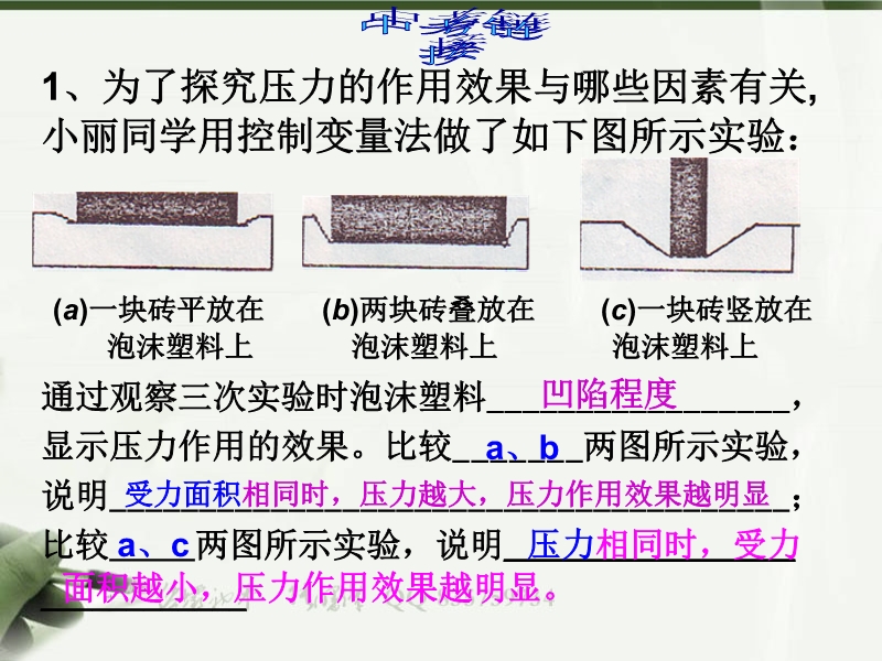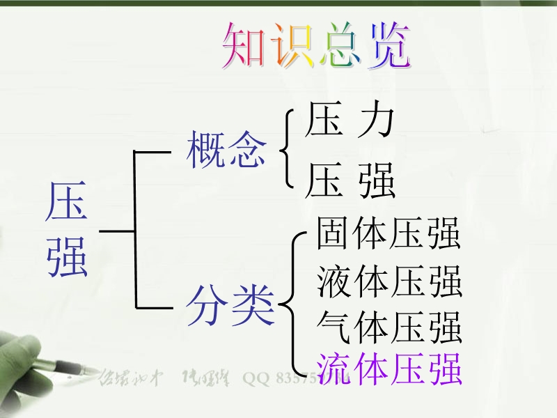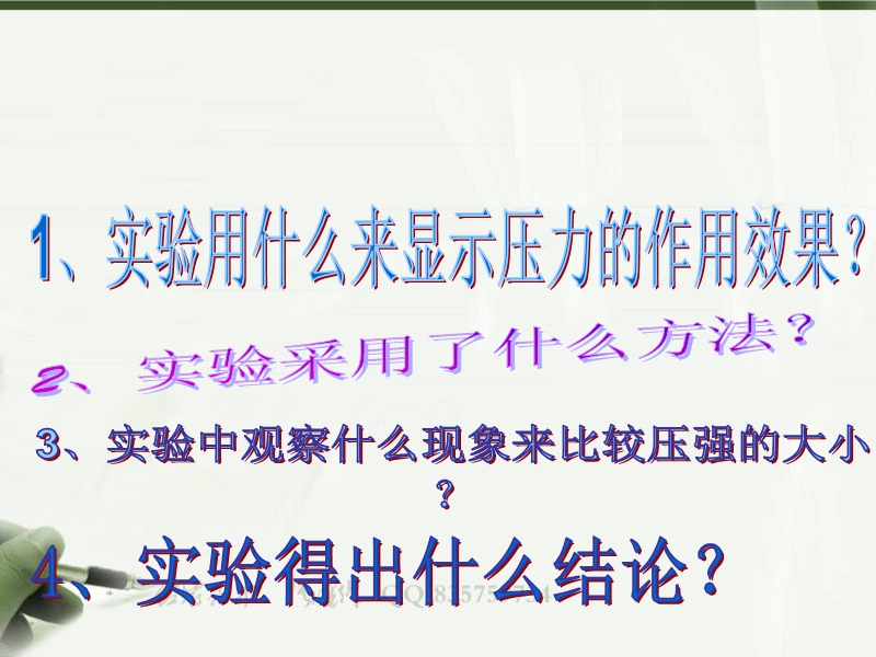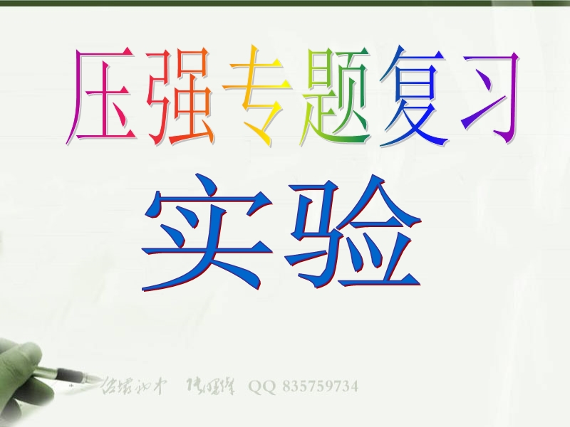 【内容简介】课件根据新人教版《压强》制作,课件共30张幻灯片组成,重点引导学生对压强一张所有试验的复习,课件制作精美、实用,值得借鉴。