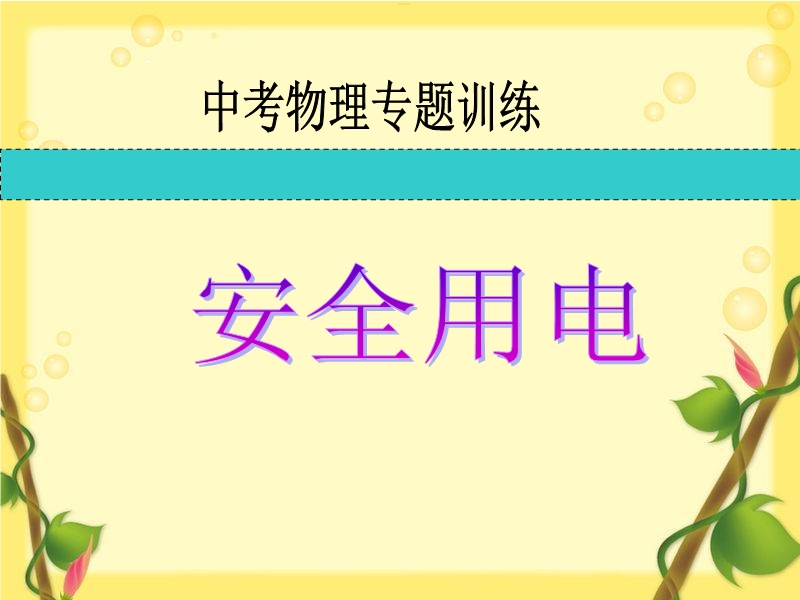 【内容简介】本课件以中考综合练习为目的制作,共有17张幻灯片,主要针对安全用电的知识进行练习。首先剖析了这部分内容的重点和难点,然后精选了常见的中考题型、易错题型、创新题型等。内容包括家庭电路的组成及连接方式、家庭电路中电流过大的原因、安全用电的知识等。每个例题有详细的解析过程,有配对练习。可供中考综合练习时参考使用。