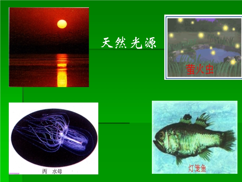 【内容简介】本课件以人教版新教材第二章第一节为基础制作,共有34张幻灯片,并插入了两个flash动画。课件展示了能够发光的物体,引导学生认识了光源,通过实验探究了光是怎样传播的,展示了光的直线传播的应用及由于光的直线传播引起的一些现象,如日食、月食、影子的形成、小孔成像等。课件制作较生动、直观,紧密联系生活,直观性强。