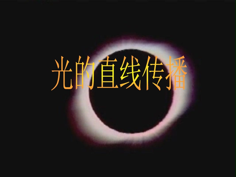 【内容简介】本课件以苏科版新教材第三章第三节为基础制作,共由18张幻灯片组成,并插入了4个flash课件和3个视频。课件通过观察日常生活的现象,总结了光在同种物质中沿直线传播的特点国。重点用光的直线传播解释了日食和月食的形成及小孔成像等。课件还引导学生认识了光的传播快慢,理解了光速的概念.