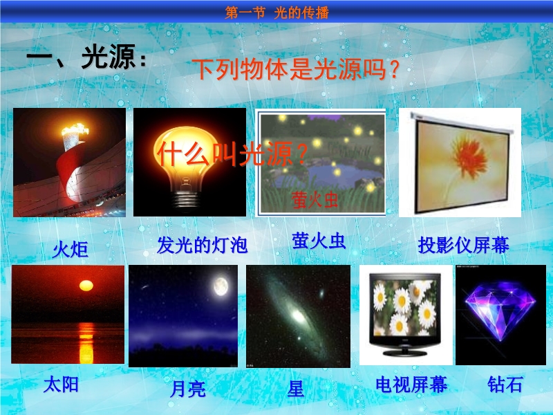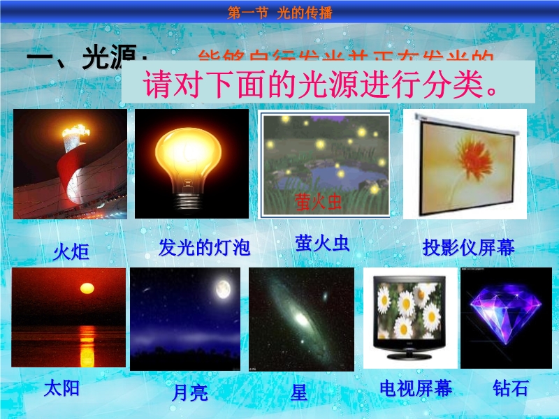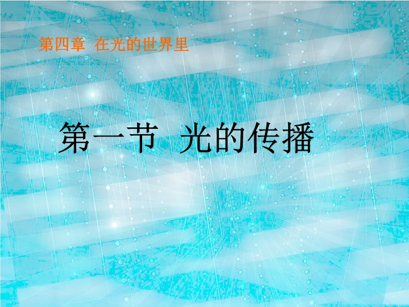【内容简介】本课件是为初中教科版物理第四章《在光的世界里》第一节光的传播而制作的多媒体课件。