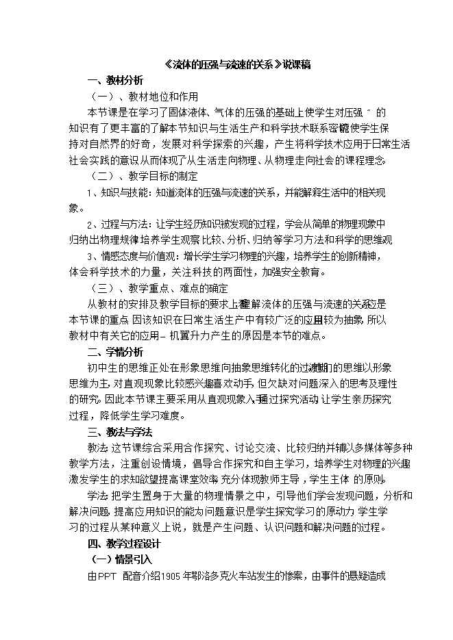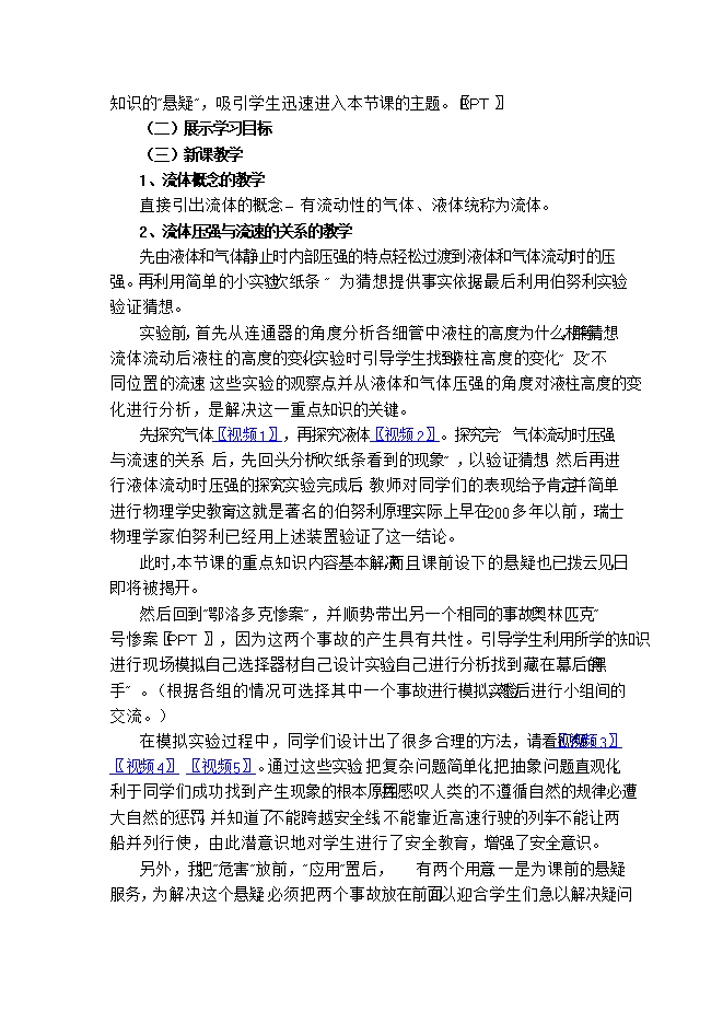 【内容简介】人教版《14.4流体压强与流速的关系》ppt是一个说课课件,内含ppt说课课件和说课稿以及8个上课视频剪辑、1flash课件组成,课件从通个视频剪辑展示了老师上课时如何突破难点一些切实可行的办法。