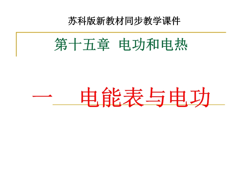 【内容简介】本课件以苏科版新教材第十五章第一节为基础制作 ,共有20张幻灯片。课件展示了感应式电能表和电子式电能表,让学生对电能表有了初步的认识,课件还引导学生学习了电功的概念、意义、单位等 ,并探究了电功与电压、电流和通电时间的关系,总结了电功的计算公式,认识了电流做功的实质,教学设计以学生探究为主,让学生主动学习。本课件可供教学“电功和电能表”时参考使用。