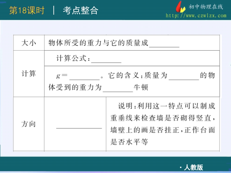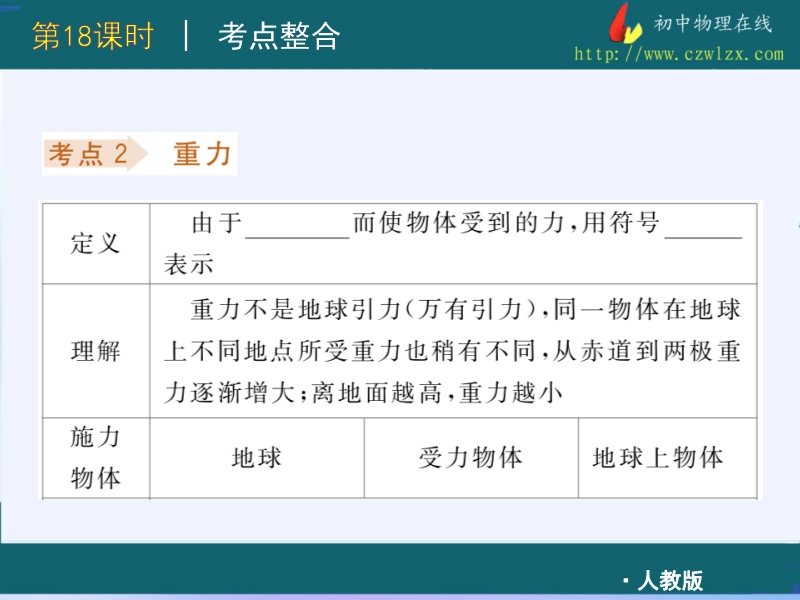 2011届人教版中考物理复习方案《弹力 重力 摩擦力》ppt课件
