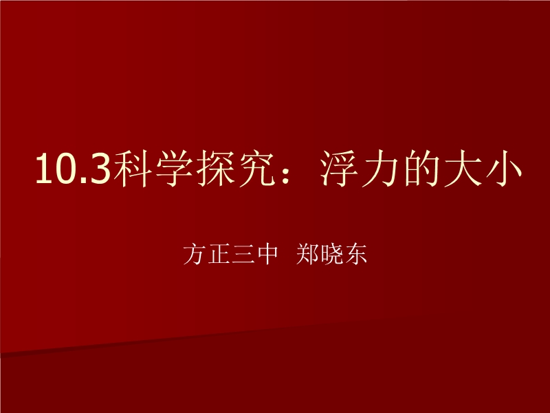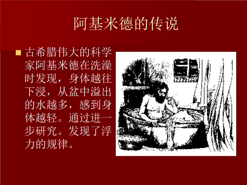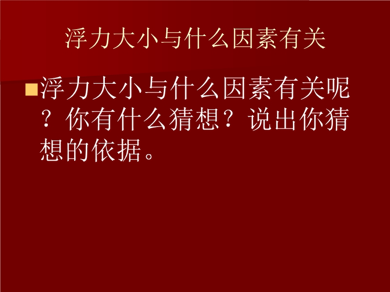 【内容简介】 本课件以教科版新教材八年级上第十章第三节为基础制作,共有18张幻灯片,主要引导学生认识了浮力的大小、课件引导学生通过具体的实验探究了浮力的大小与哪些因素有关,探究了阿基米德原理,及公式及使用范围。课件设计以学生为主体,充分发挥充分发挥学生学习的主动性。