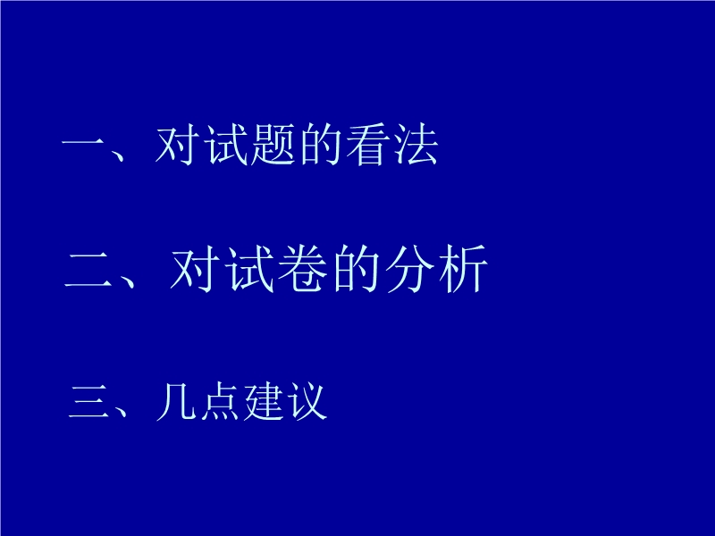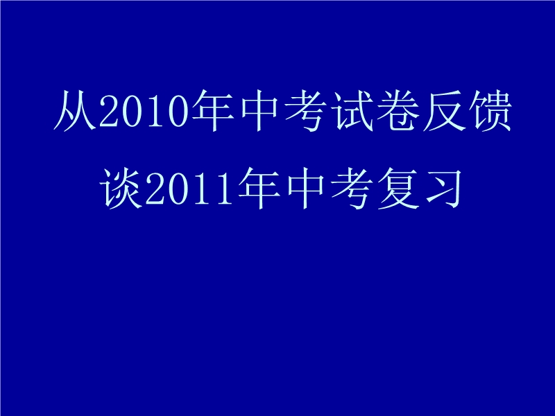 【内容简介】课件结合2010中考和最新考纲,谈如何实现2011年的中考复习。课件从一、对试题的看法 二、二、对试卷的分析 三、三、几点建议等方面展示了作者的观点,值得借鉴,可作2011中考复习参考使用。