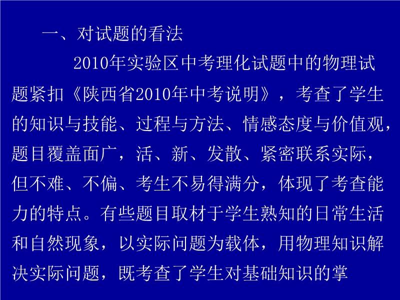 陕西省教研所《从2010年中考试卷反馈谈2011年中考复习物理》ppt(免费)
