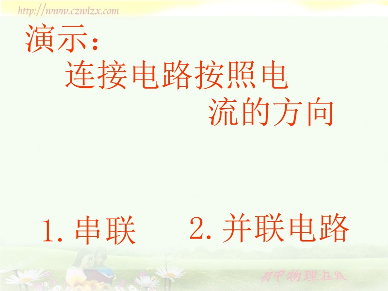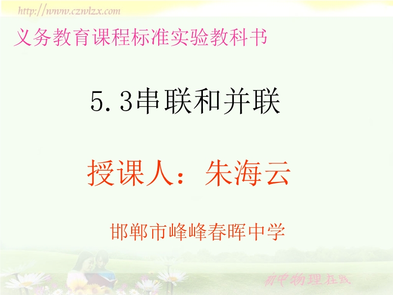 【内容简介】本课件以人教版新教材第五章第三节为基础制作,共14张幻灯片和3个flash组成。课件引导学生通过具体的实验活动认识了串联电路和并联电路,并通过flash模拟实验探究了串联电路和并联电路的特点,较生动、形象、具体,课件还精选了适量的练习。