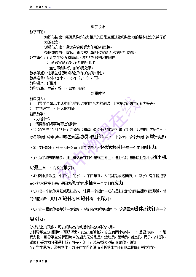 沪科版《6.1力》ppt+视频课件+教案