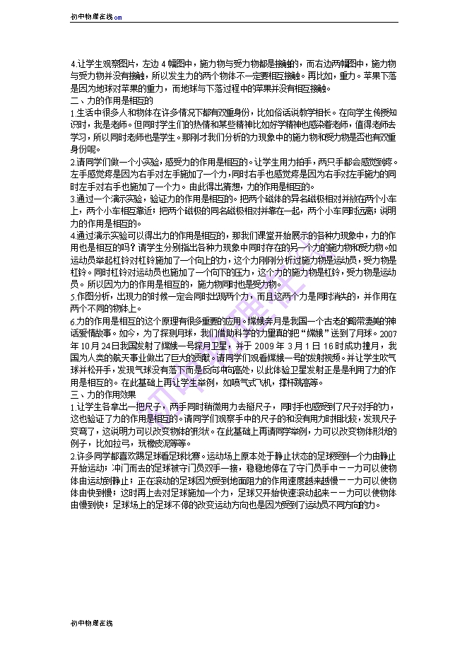 【内容简介】本课件以沪科版新教材第6章第一节为基础制作,共有17张幻灯片和4个视频。课件通过嫦娥一号视频引入,图片展示生活中的实例,引导学生总结了什么是力,课件赵本山的小品《卖拐》展示了力可能发生的作用效果,总结了力的作用效果。