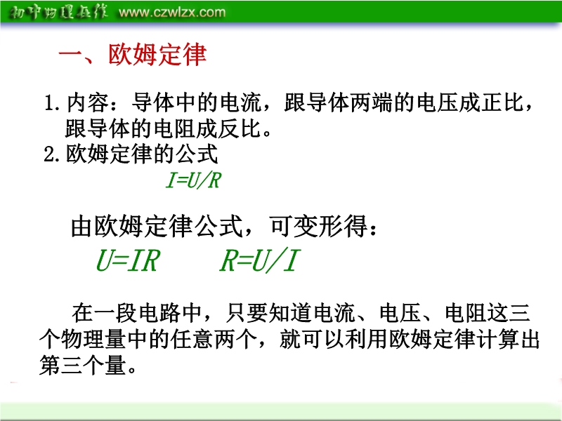 2012届中考物理备考复习课件:第七章 欧姆定律