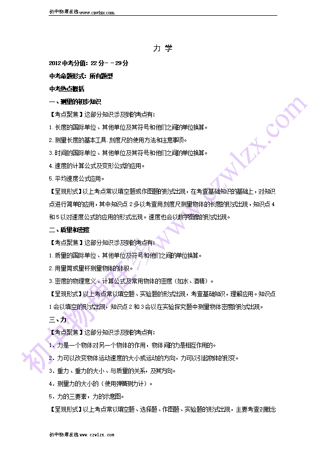 2012力学复习精品课件:《力学复习》ppt课件+《专项突破试题》word