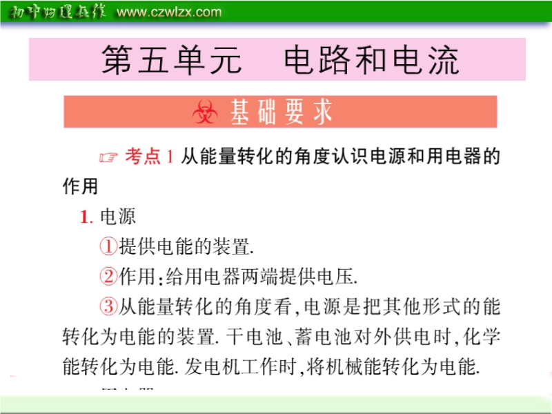 2012年中考复习资料《第五单元 电流和电路》ppt课件(免费)