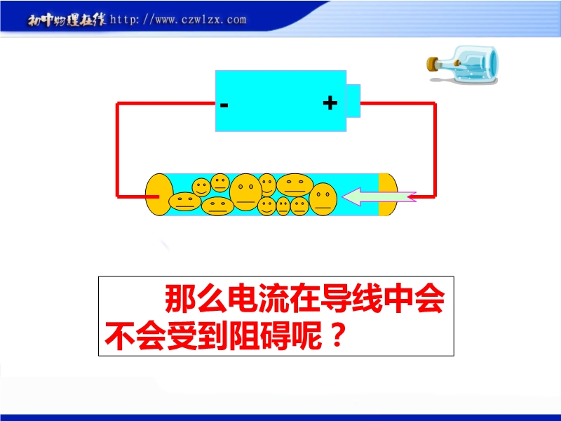 【内容简介】本课件以人教版新教材第六章第一节为基础制作,共有28张幻灯片。课件设计新颖,将道路上的车辆阻塞与电荷在电路上的阻碍对比,引导学生认识了电阻的概念,并引导学生通过实验探究了电阻的大小与材料、长度和横截面积的关系。课件的特点生动,形象、直观。