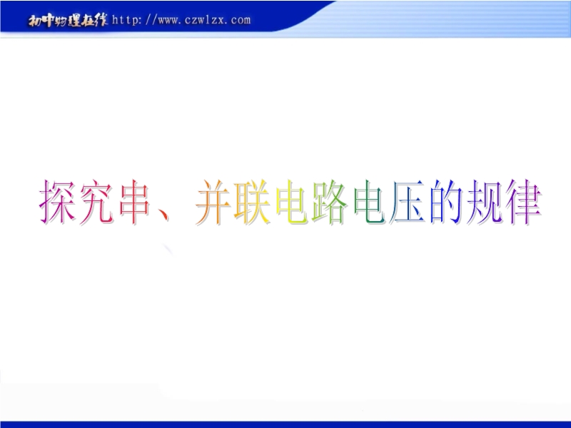 【内容简介】本课件以人教版新教材第六章第二节内容为基础制作,共有17张幻灯片和2个flash动画,主要引导学生通过实验探究了串联、并联电路的电压,同时利用动画演示,总结了串联和并联电路的电压特点,教学设计重点突出,化解难点。