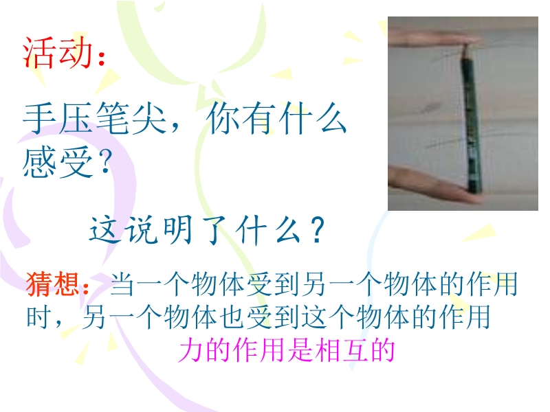 - 下一份课件:苏科版《8.4力的作用是相互的》ppt+视频