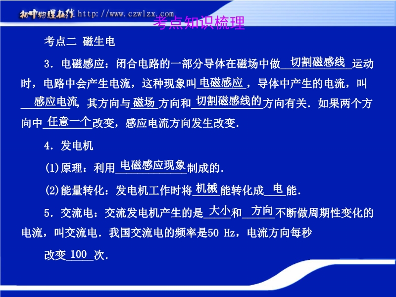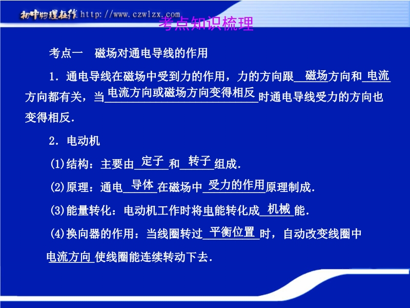 2012版中考物理精品课件:《电动机、磁生电》ppt