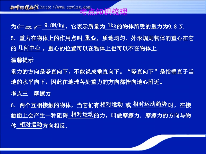 2012版中考物理精品课件:《重力、弹力、摩擦力》ppt课件
