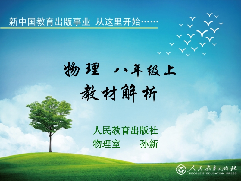 【内容简介】2012年7月重庆市新教材培训会ppt:《物理八年级上册教材解析》,由129张幻灯片组成。主讲人:人民教育出版社物理室 孙新。
