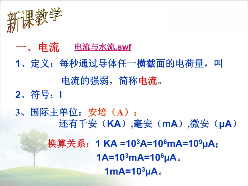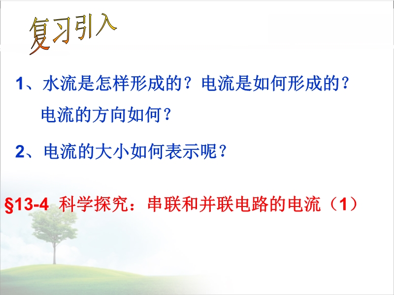 【内容简介】本课件以沪科版新教材第十三章第四节为基础制作,共有38张幻灯片共两课时的内容。课件引导学生认识了电流表,总结和归纳了电流表的使用,课件还引导学生测量了串联电路和并联电路的电流,并讨论了它们的规律。本课件可供教学“电流”时参考使用。