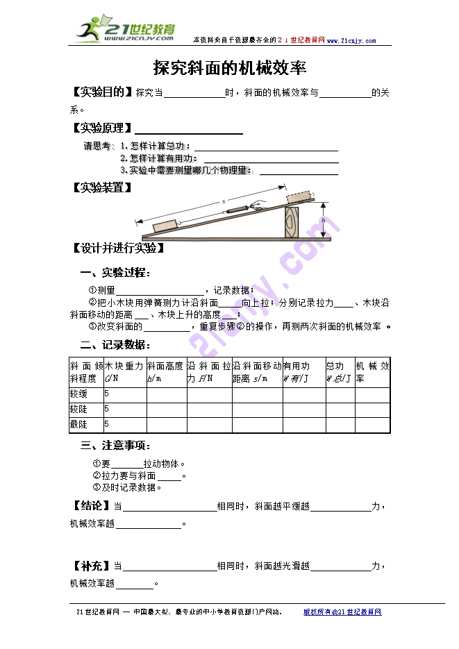【内容简介】本课件以人教版新教材第十五章第二节为基础制作,共有28张幻灯片。压缩包共有三个课件,第一课件通过具体事例引导学生认识了有用功、额外功、总功的概念,机械效率的概念和计算方法,机械效率的物理意义等。第二课时设计引导学生运用知识计算机械效率。第三课时引导学生认识了斜面的机械效率。