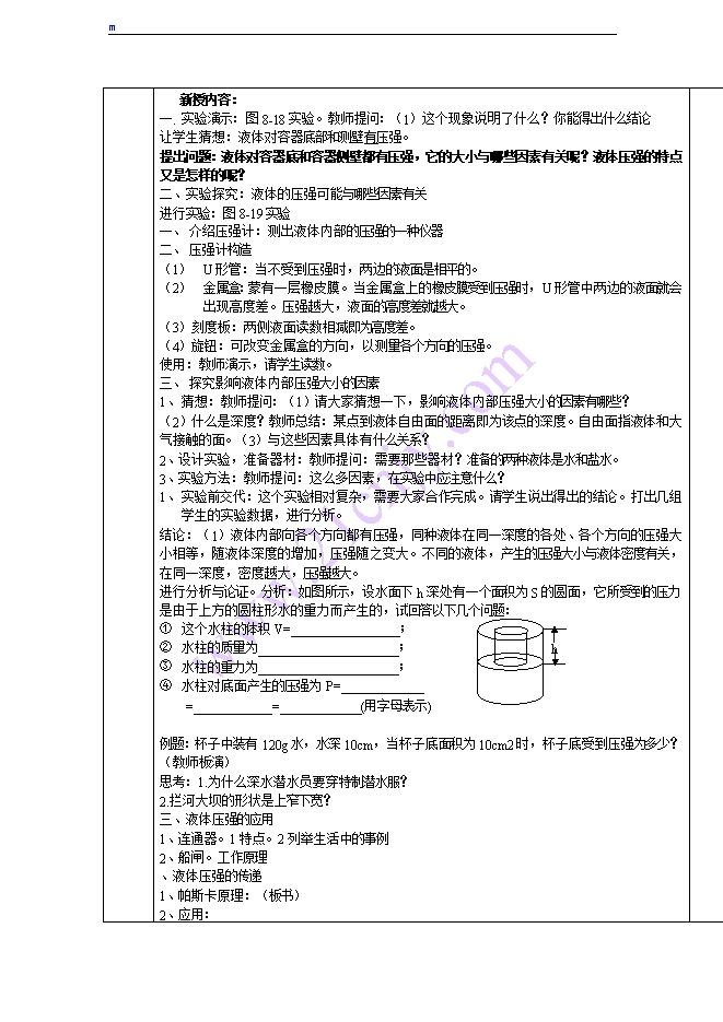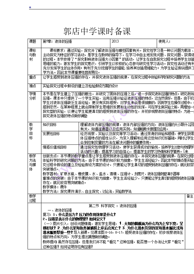 郭店中学:新人教版《9.2液体的压强》ppt+学案+教案+视频