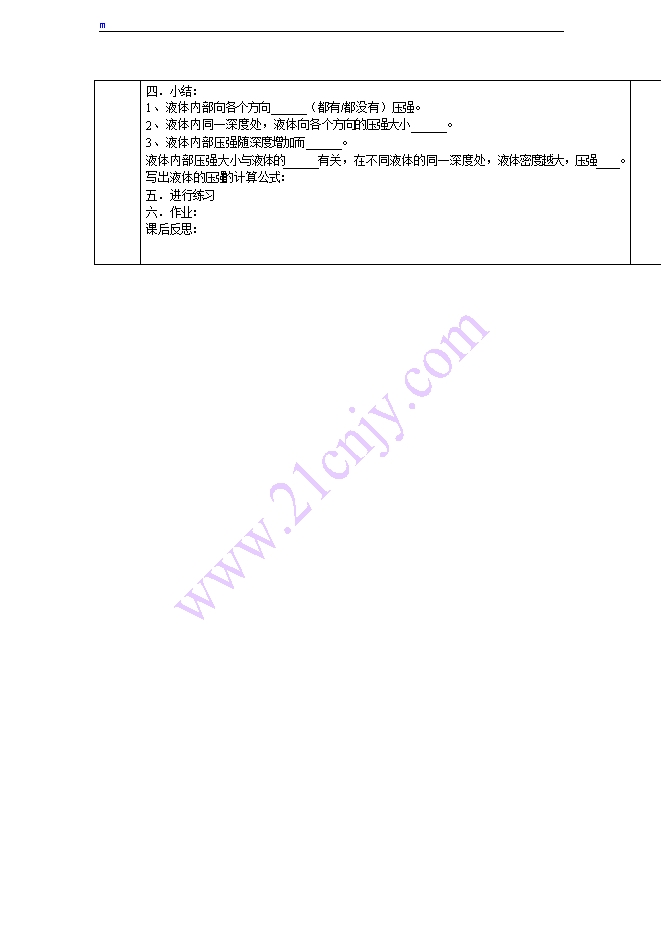 - 362025春沪粤版八年级下册物理教学设计:8.2 液体的压强(附教学反思)
