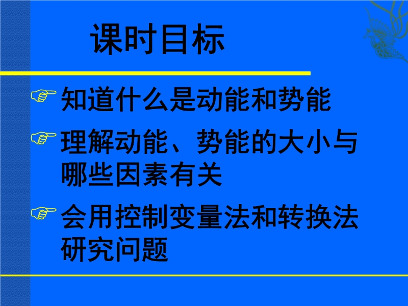 【内容简介】新人教版《11.3动能和势能》ppt课件,本课件以人教版新教材第十一章第三节为基础制作,共有31张幻灯片。课件通过生活实例引导学生认识了能量的概念、动能的概念、势能的概念,并引导学生通过实验探究了动能与哪些因素有关。认识了重力势能与哪些因素有关、弹性势能与哪些因素有关等,