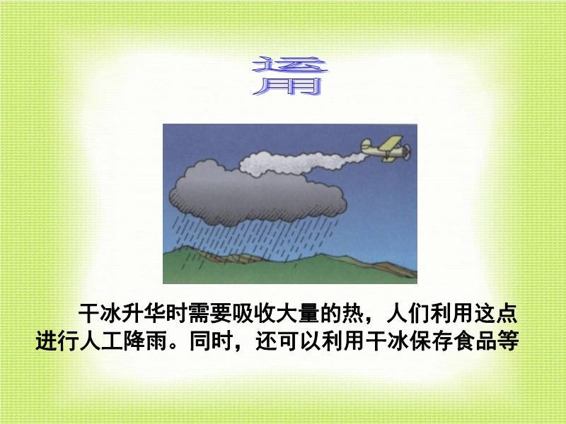 【内容简介】本课件以沪科版新教材第十二章第四节《12.4升华与凝华》为基础制作,共有17张幻灯片,并插入了两个flash动画。课件引导学生认识了升华与凝华现象,并用flash动画模拟了碘的升华实验,展示了人工降雨过程应用到的升华。课件还展示了生活中的凝华现象,最后引导学生总结了物态变化过程中的吸热、放热过程及电冰箱的原理,体现了物态变化的应用等。本课件可供教学“升华与凝华”时参考使用。