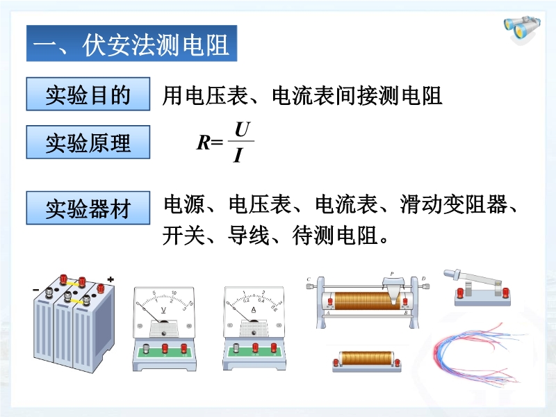 - 1666【教学课件】人教版九年级物理 第十七章 欧姆定律 第3节 电阻的测量 精品课件与配套教案