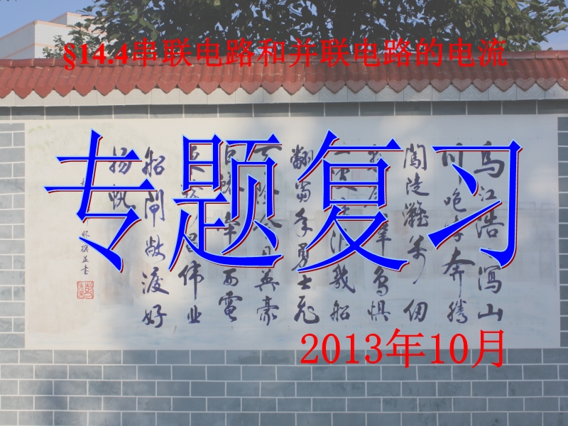 【内容简介】沪科版《14.4 串联电路和并联电路的电流》专题训练ppt课件,课件17张幻灯片,课件首先复习了电流的概念、电流表的使用和串联、并联电路电流的规律,精选了几十道2012-2013年中考试题,提高学生运用知识的能力等。