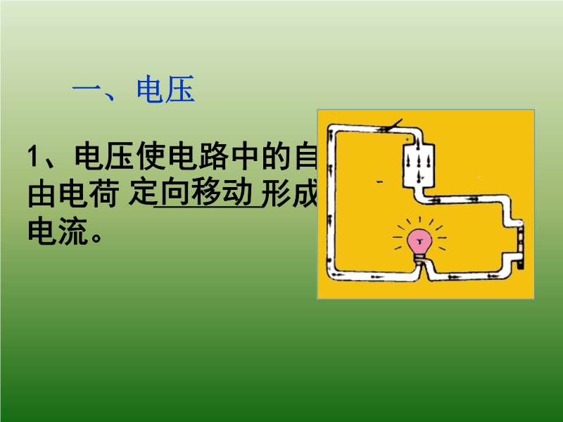 【内容简介】本课件以沪科版新教材第十四章第五节为基础制作,共有41张幻灯片。课件引导学生认识了电压的作用,展示了各种电池,学习了电压的符号、电压的单位等,课件还展示了各种电压表,重点引导学生认识了学生电压表,并讨了它的使用方法,用flash动画模拟了电流表的读数练习,课件还引导学生使用电压表测量了电池的电压、串联电路的电压、并联电路的电压等。本课件可供教学“电压”时参考使用。