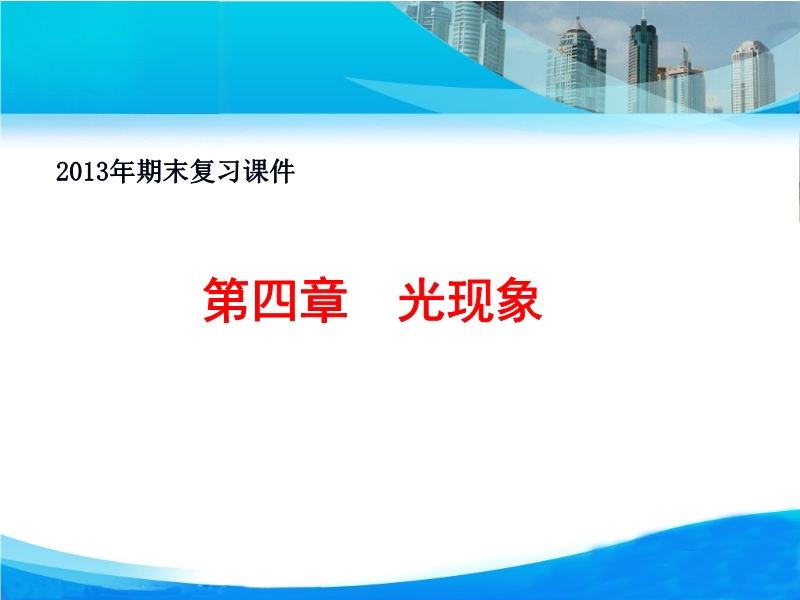 【内容简介】曙光工作室:人教版《第四章 光现象》ppt复习课件,课件共47张幻灯片,课件引导学生复习了光的直线传播,光的反射和光的折射等,课件的重点展示了中考试题出现的形式和考查方式以及难以程度,通过大量的训练提高学生的应用知识的能力。
