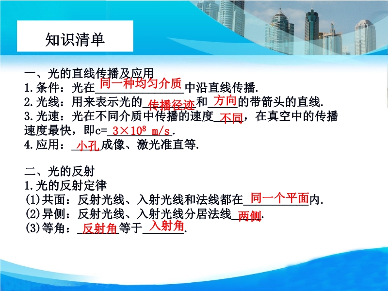 - 842025年中考物理基础知识复习课件:第3讲 光现象