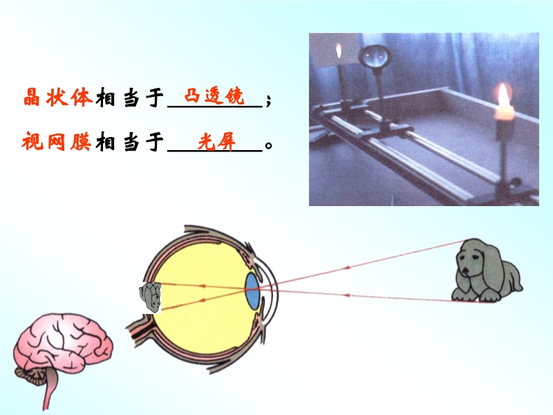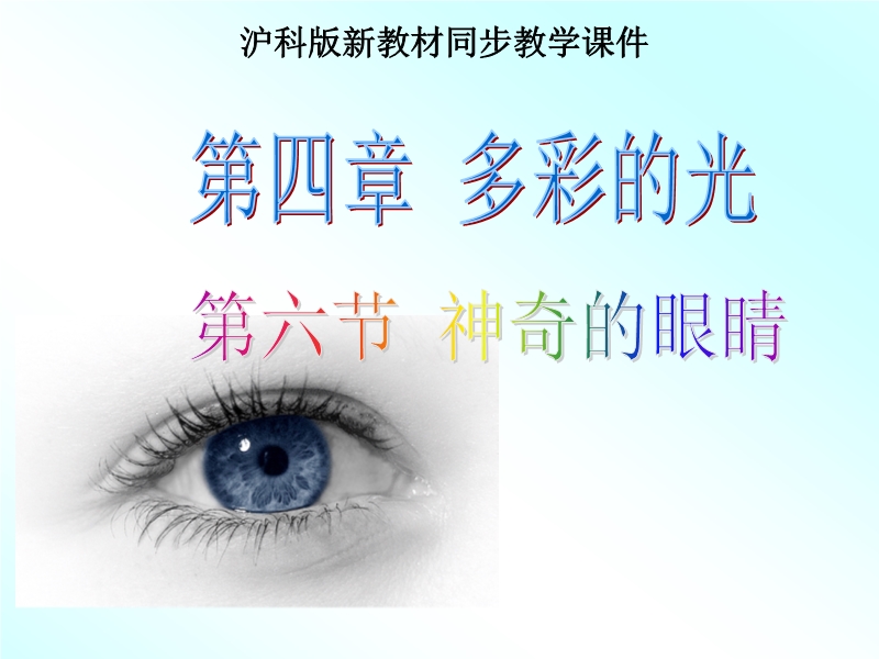 【内容简介】本课件以沪科版新教材第四章第六节为基础制作,共有29张幻灯片。课件引导学生认识了眼睛的构造、讨论了眼睛的视物原理,并展示了近视眼和远视眼的形成原因,讨论了矫正方法,课件还引导学生认识了透镜的应用,包括放大镜、照相机、显微镜、望远镜等。课件制作新颖、独特、生动、形象、具体,可供教学“眼睛及透镜应用”时参考使用。