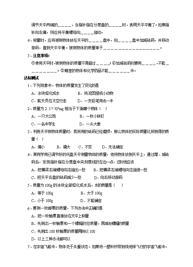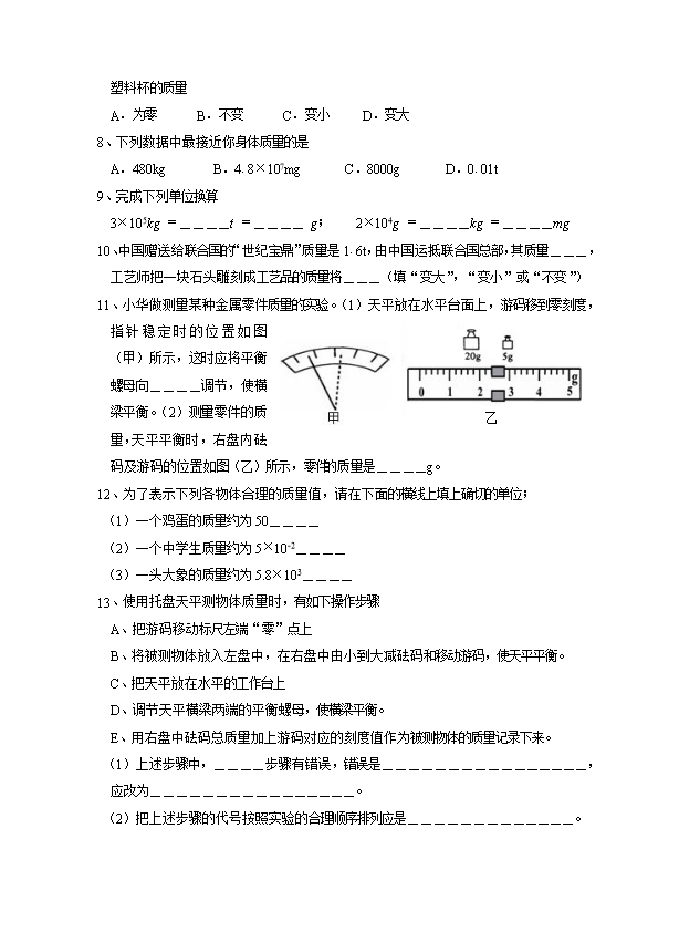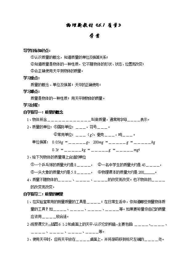 - 13552024-2025新人教版八年级物理上册导学案:6.1《质量》导学案