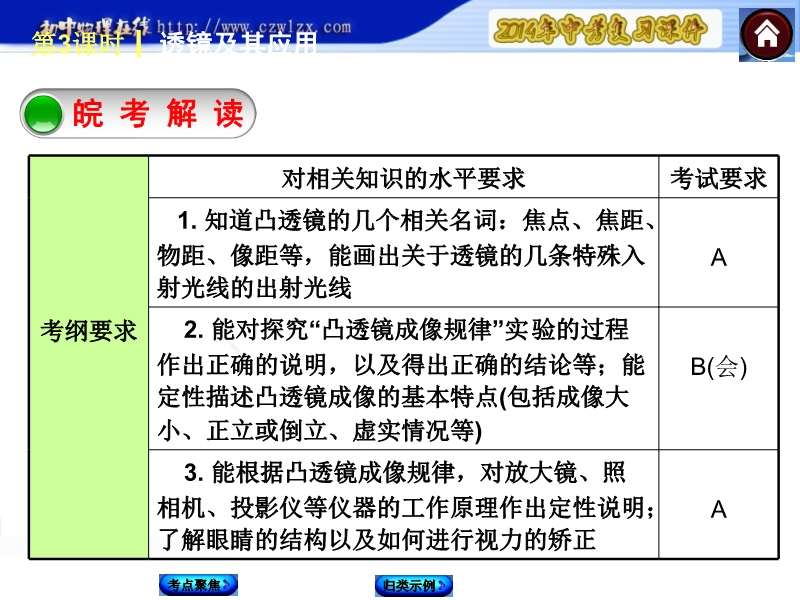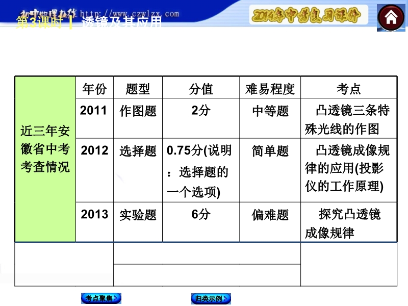 【最新—中考必备】2014中考复习方案课件:第3课时 透镜及其应用(皖考解读+考点聚焦+皖考探究)