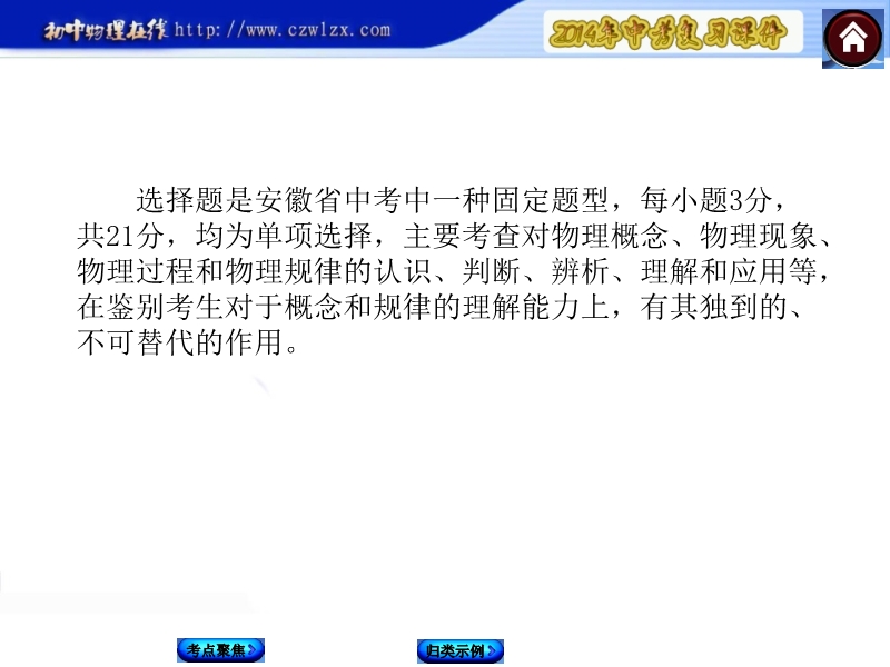 【中考必备】2014中考复习方案课件:题型2 选择题解题策略(考点聚焦+归类示例)-题型精讲