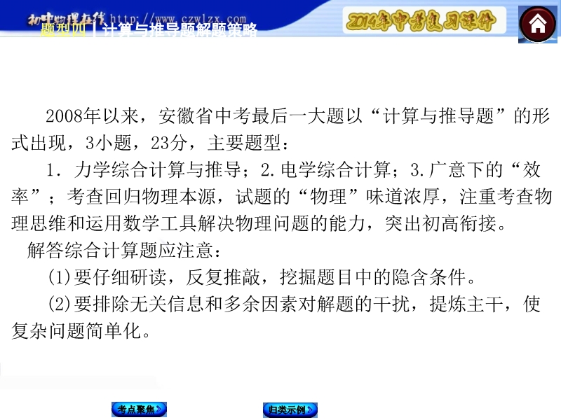 【中考必备】2014中考复习方案课件:题型4 计算与推导题解题(考点聚焦+归类示例)-题型精讲