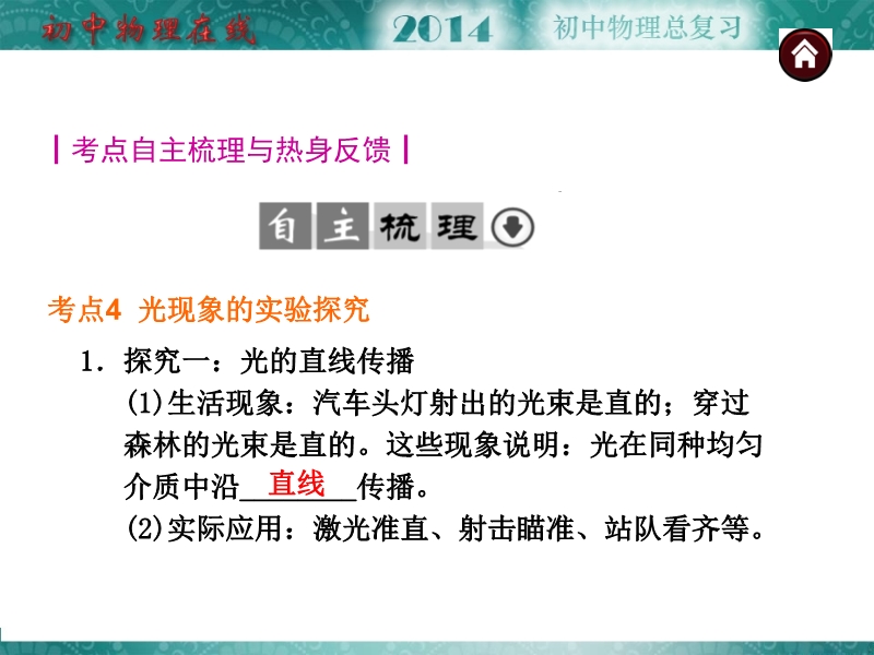 【中考夺分天天练】2014年人教版中考物理总复习:第2讲 光现象探究