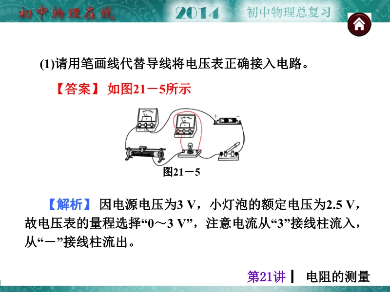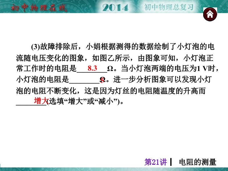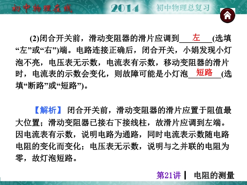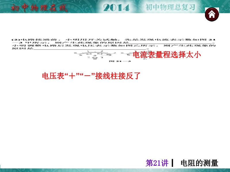 【中考夺分天天练】2014年人教版中考物理总复习:第21讲 电阻的测量