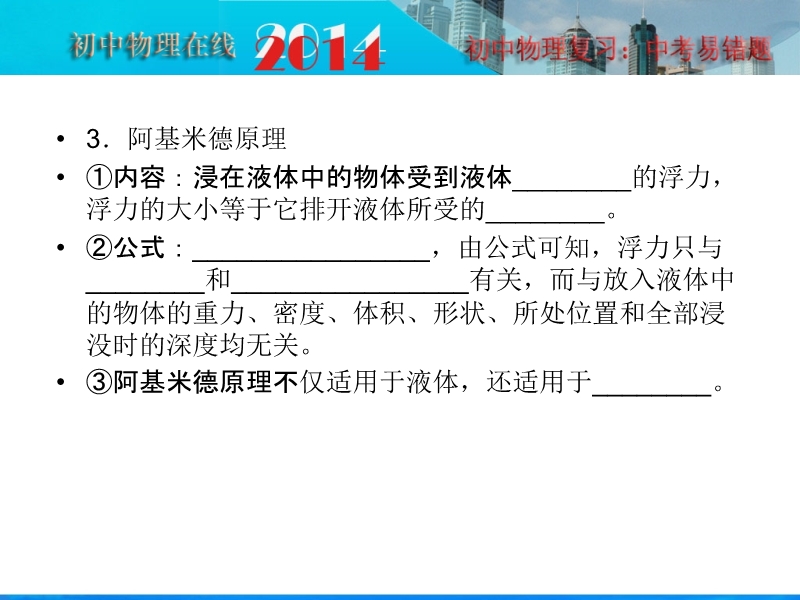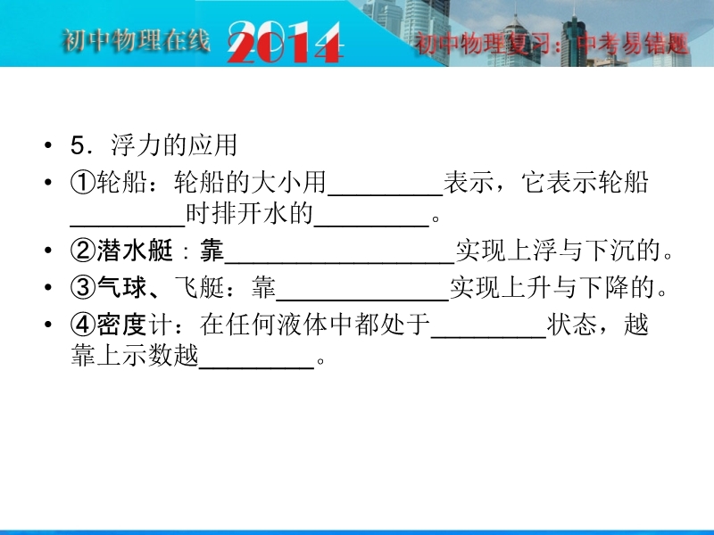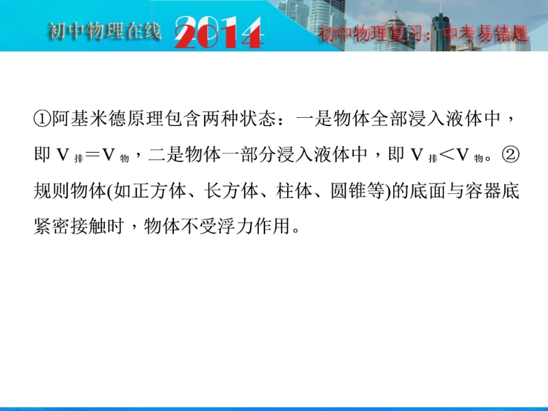 2014年人教版总复习(知识梳理+真题体验+考点透析+实验探究+易错档案):10.浮力及其应用