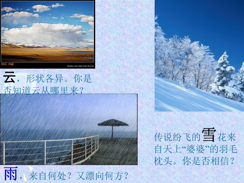 【内容简介】本课件以沪科版新教材第十二章第一节为基础制作,共有34张幻灯片。课件首先展示了水在自然界中的存在状态及发生的变化,让学生认识了自然界中的物质有三态,并且在一定的条件下可以相互转化。然后引导学生学习了什么叫温度及温度的测量标准和单位,展示了各种温度计,重点引导学生学习了常用温度的原理、结构及使用等。本课件可供教学“温度及温度计”时参考使用。
