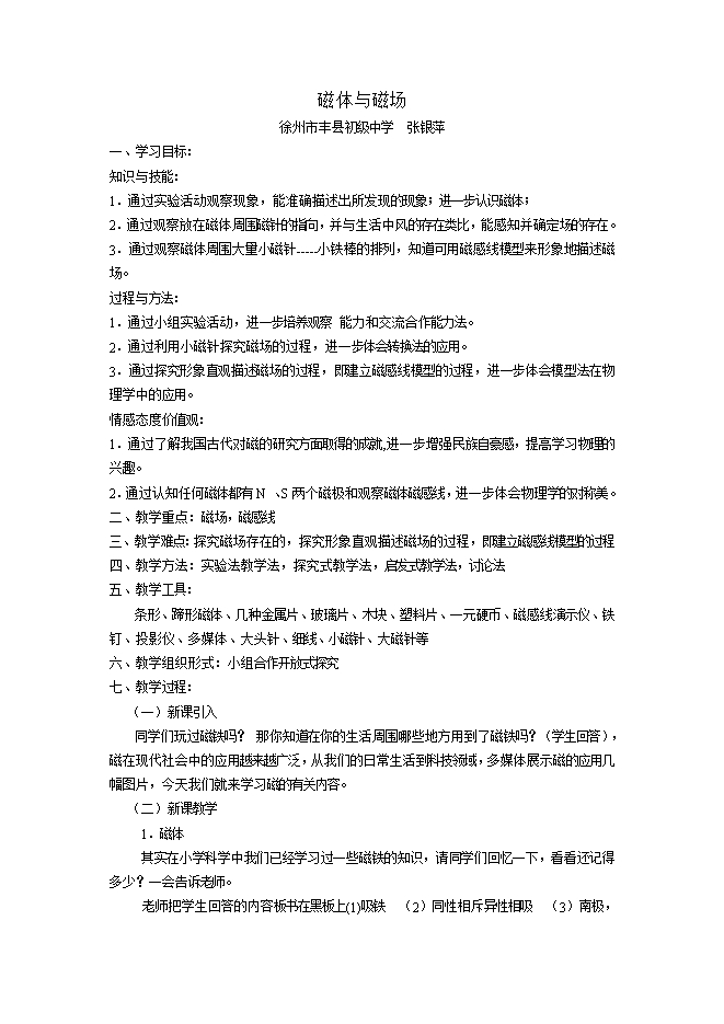 江苏省优质课:徐州市丰县初级中学《16.1磁体与磁场》课件