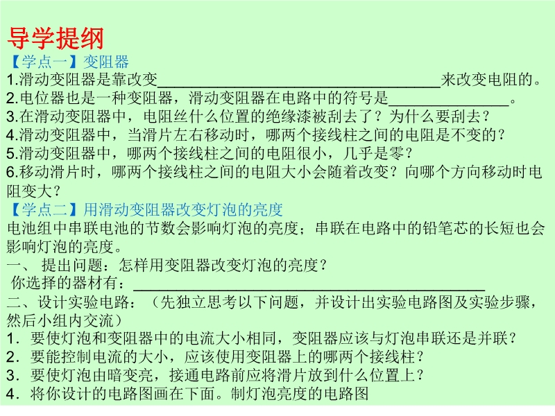 - 1030圣陶实验中学生态课堂九年级物理课时学历案:16.4 变阻器
