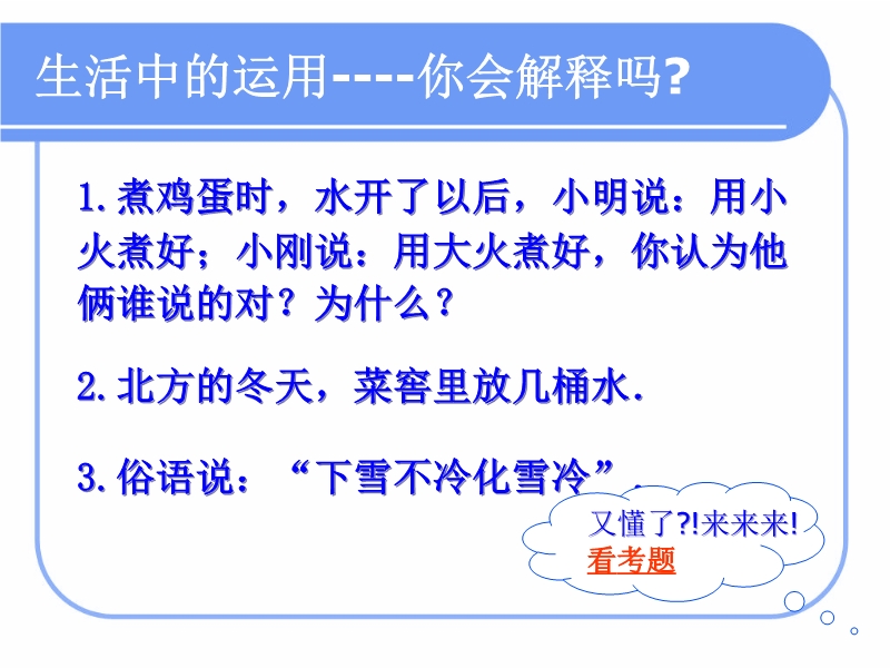 【内容简介】沪科版《热学》PPT+flash+视频复习课件,课件的内容属于“第十二章 温度与物 态变化和第十三章 内能与热机 ”课件共19张幻灯片、2个flash和1个视频,内容全面,不过试题不多。