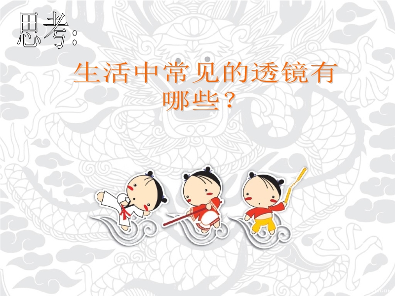 【内容简介】人教版《5.1透镜》ppt课件,共有30张幻灯片。课件主要引导学生认识了两种透镜,引导学生探究了两种透镜对光的作用。课件制作形象、生动,能帮助教师更好地解决教学中的难点,有利于学生的理解和记忆,将内容更加具体化。