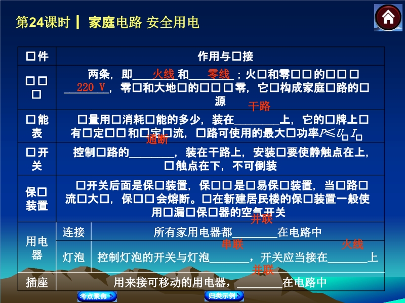 2015届人教版中考复习方案:《第24课时 家庭电路 安全用电》ppt课件(免费)