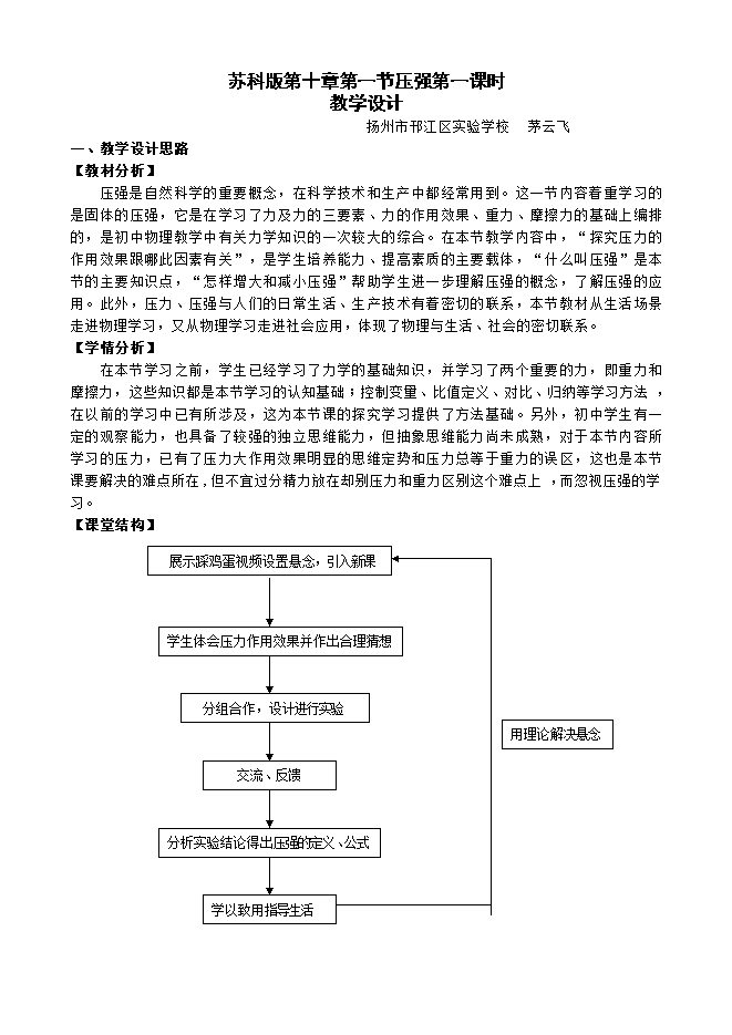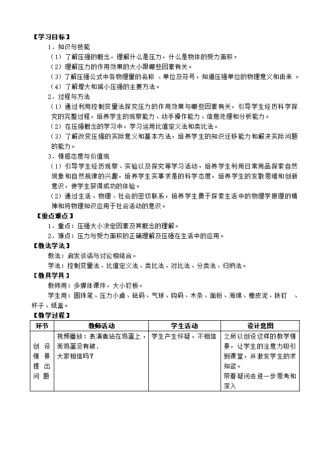 扬州市邗江区实验学校:苏科版《10.1压强》ppt+教案课件(免费)